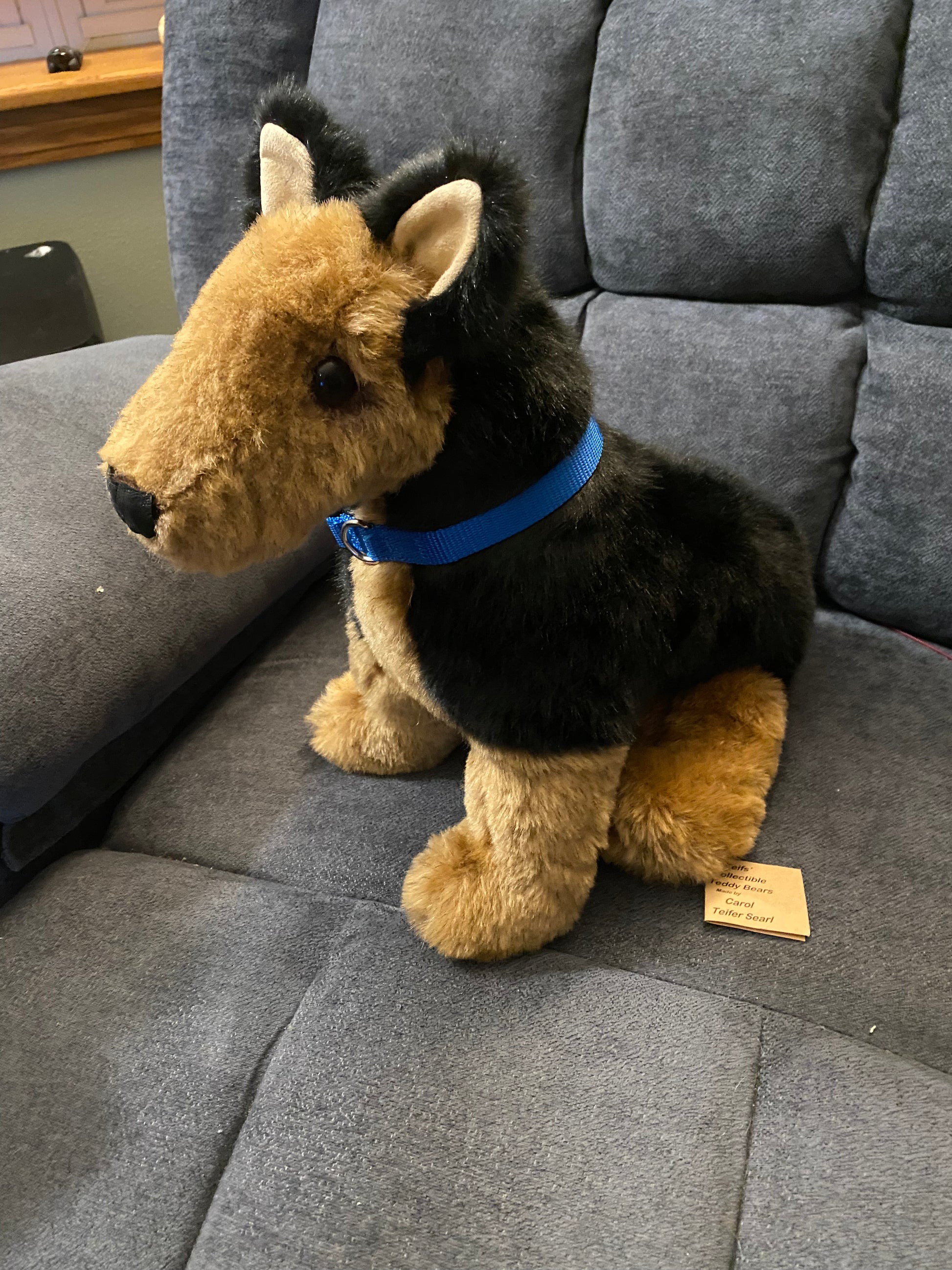 Handmade German Shepherd Puppy – Black and Gold Plush with German Glass Eyes